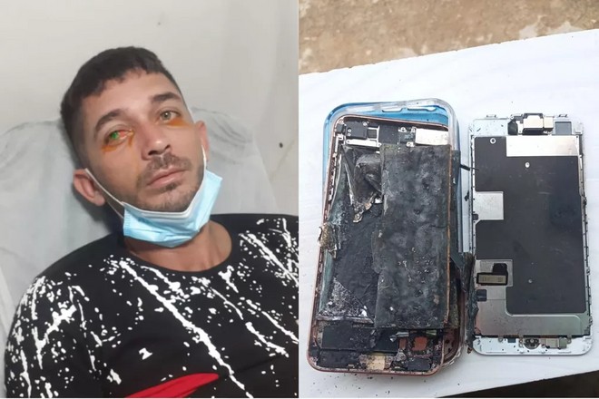 irreconhecível após a explosão. Após tentar contato com a loja em que o iPhone